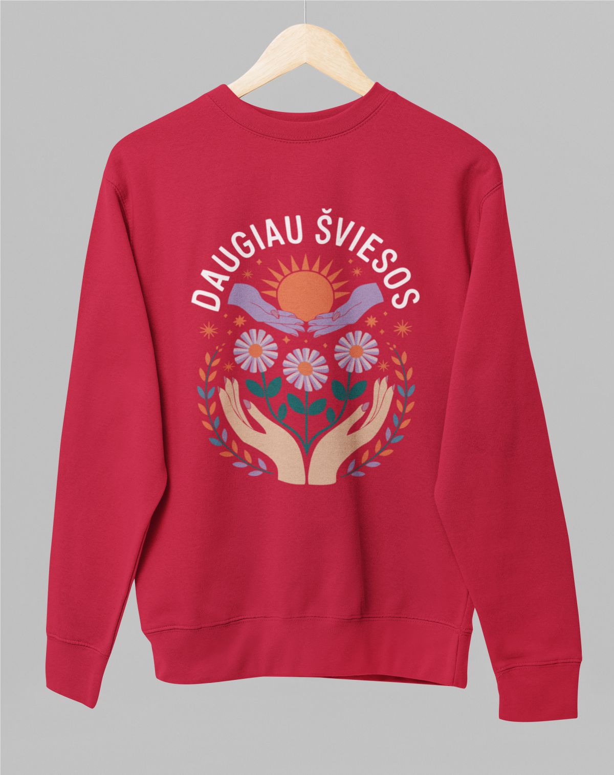 Raudonas UNISEX džemperis be kapišono "Daugiau šviesos"