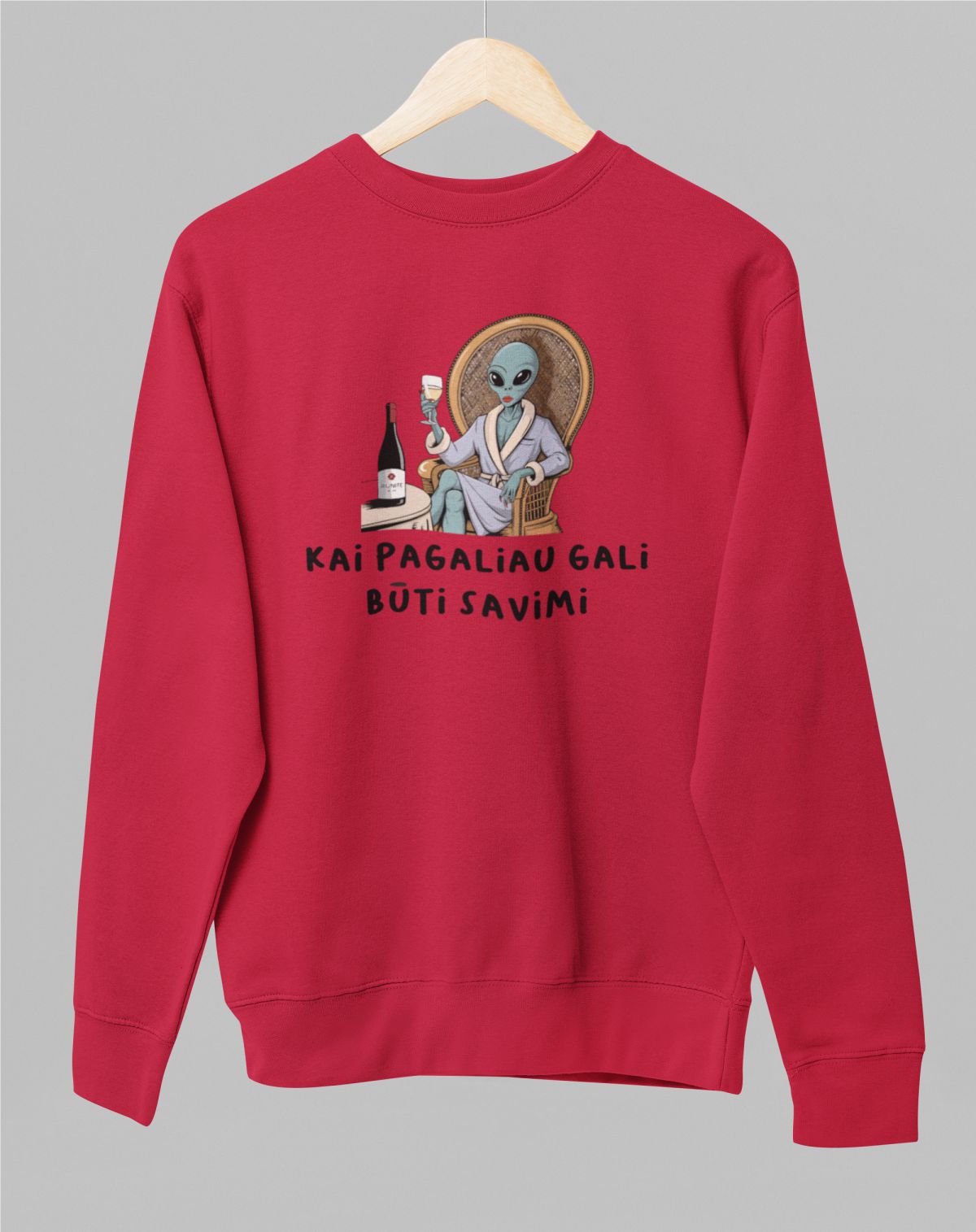 Raudonas UNISEX džemperis be kapišono "Kai pagaliau gali būti savimi"
