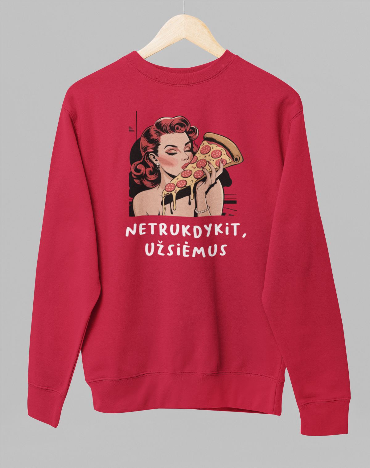 Raudonas UNISEX džemperis be kapišono "Netrukdykit, užsiėmus"