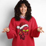 Raudonas UNISEX kalėdinis džemperis be gobtuvo "Kalėdinė moteriška kaukolė"
