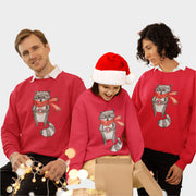 Raudoni UNISEX džemperiai šeimoms "Meškėnas"