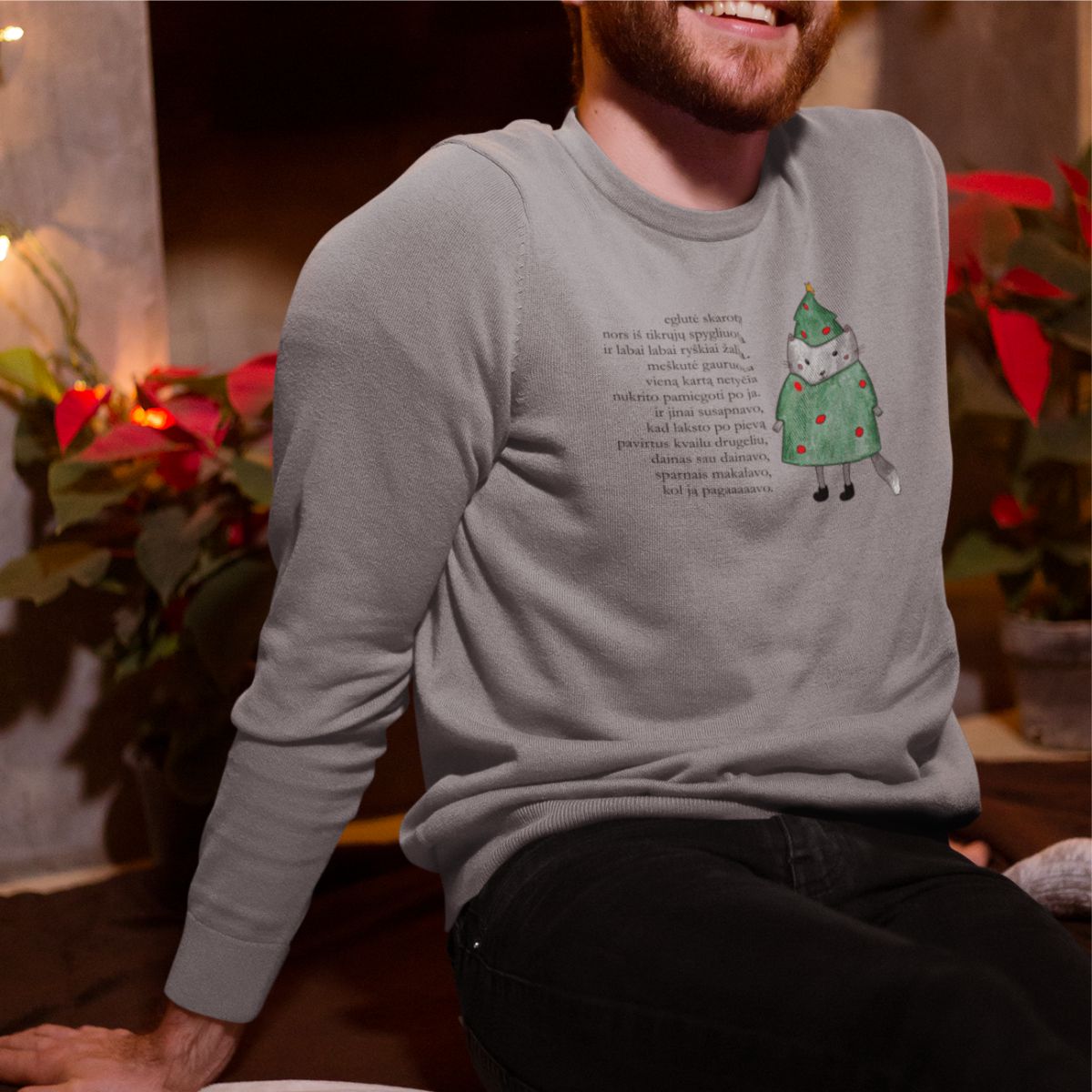 UNISEX pilkas kalėdinis džemperis be gobtuvo "Eglutė skarota"
