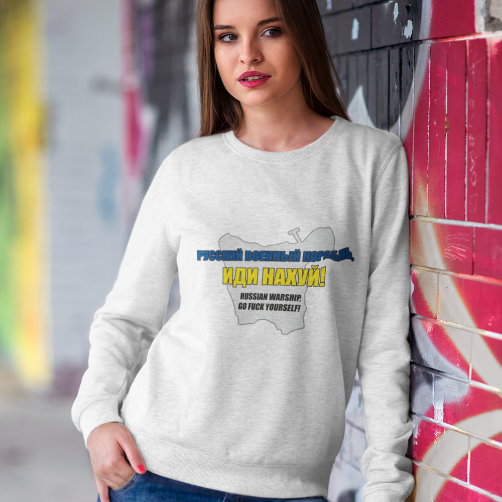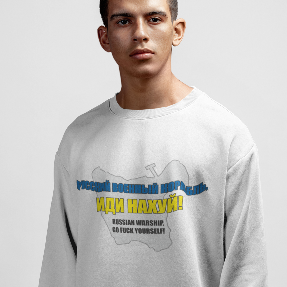 Baltas džemperis be gobtuvo - РУССКИЙ ВОЕННЫЙ КОРАБЛЬ, ИДИ НАХУЙ! RUSSIAN WARSHIP, GO FUCK YOURSELF!