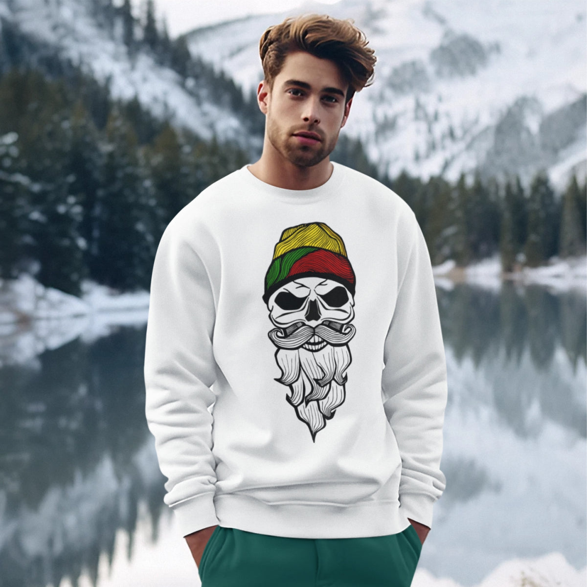 Baltas UNISEX džemperis be gobtuvo "Lietuvos kaukolė"