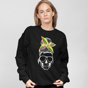 Juodas UNISEX džemperis be gobtuvo "Pin up kaukolė"