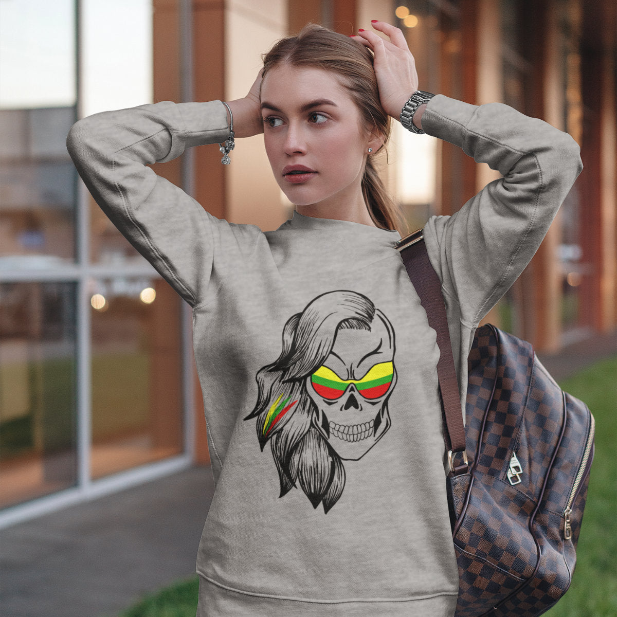 Pilkas džemperis be gobtuvo "Moteriška kaukolė"
