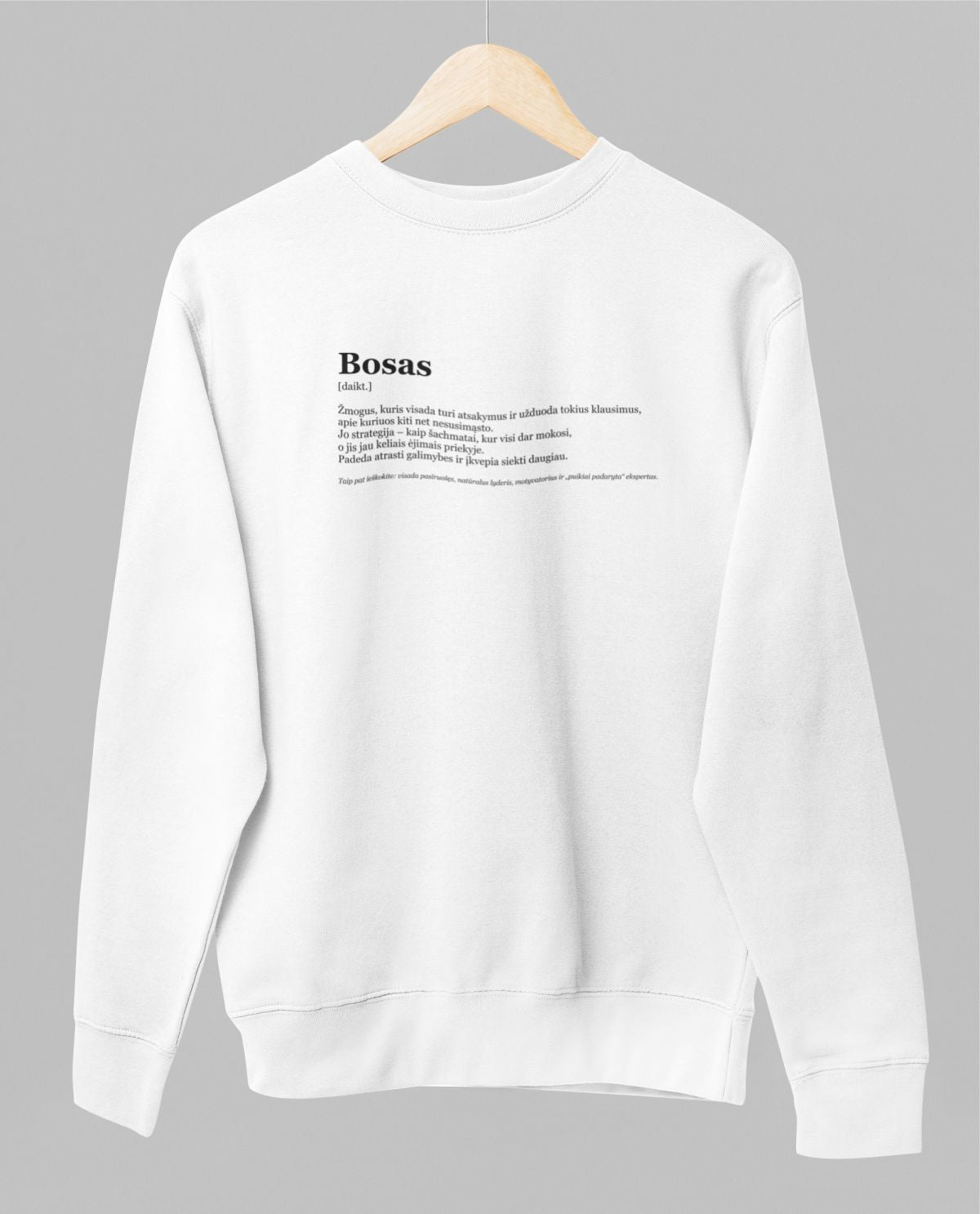 Baltas džemperis be gobtuvo "Boso aprašymas"