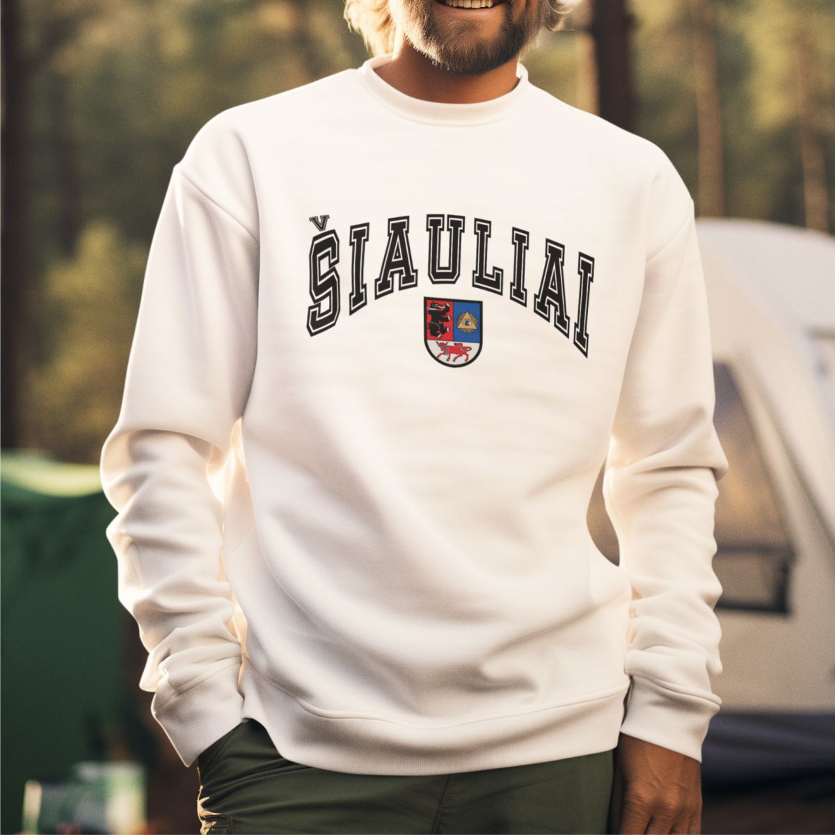 Baltas džemperis be gobtuvo "Šiauliai su herbu"