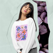 Baltas UNISEX džemperis be gobtuvo "Gėlynas"