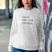 Baltas UNISEX džemperis be gobtuvo "Good morning"