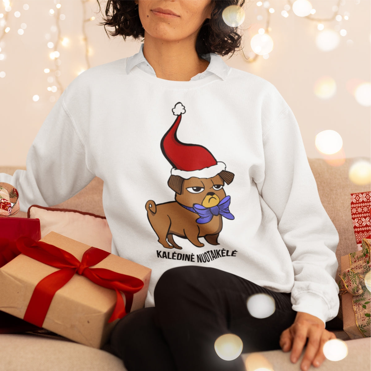 Baltas UNISEX džemperis be gobtuvo "Kalėdinė nuotaikėlė"