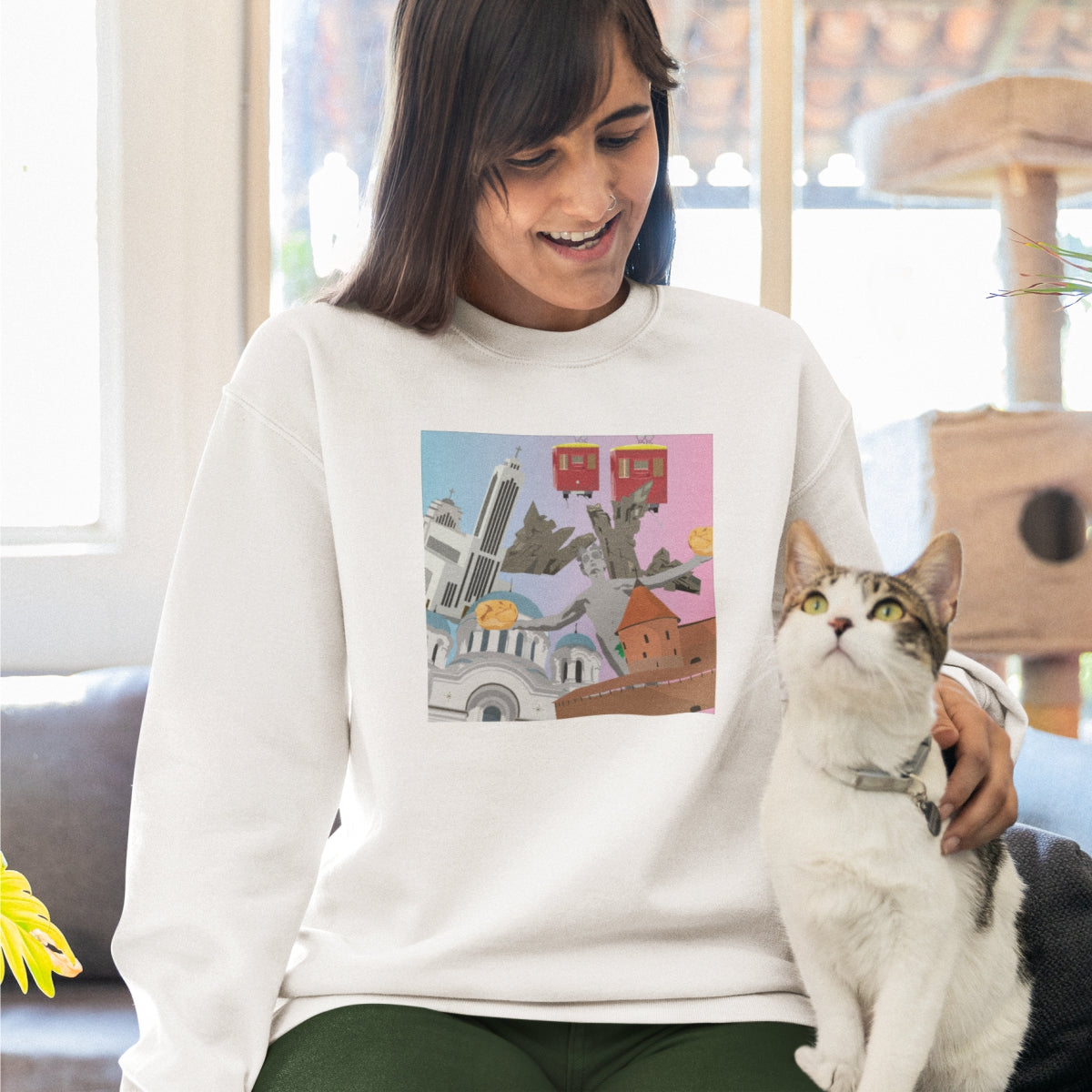 Baltas UNISEX džemperis be gobtuvo "Kauno akcentai"