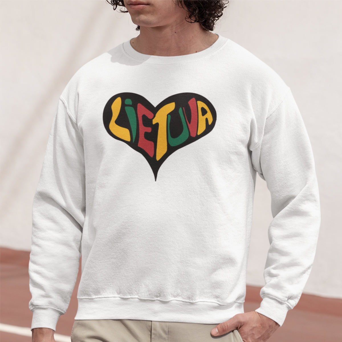 Baltas UNISEX džemperis be gobtuvo "Lietuvos širdis"