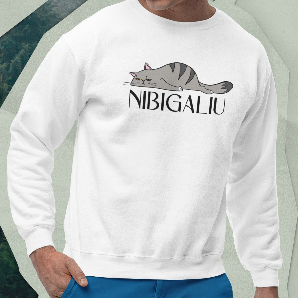 Baltas UNISEX džemperis be gobtuvo "Nibigaliu naujas"