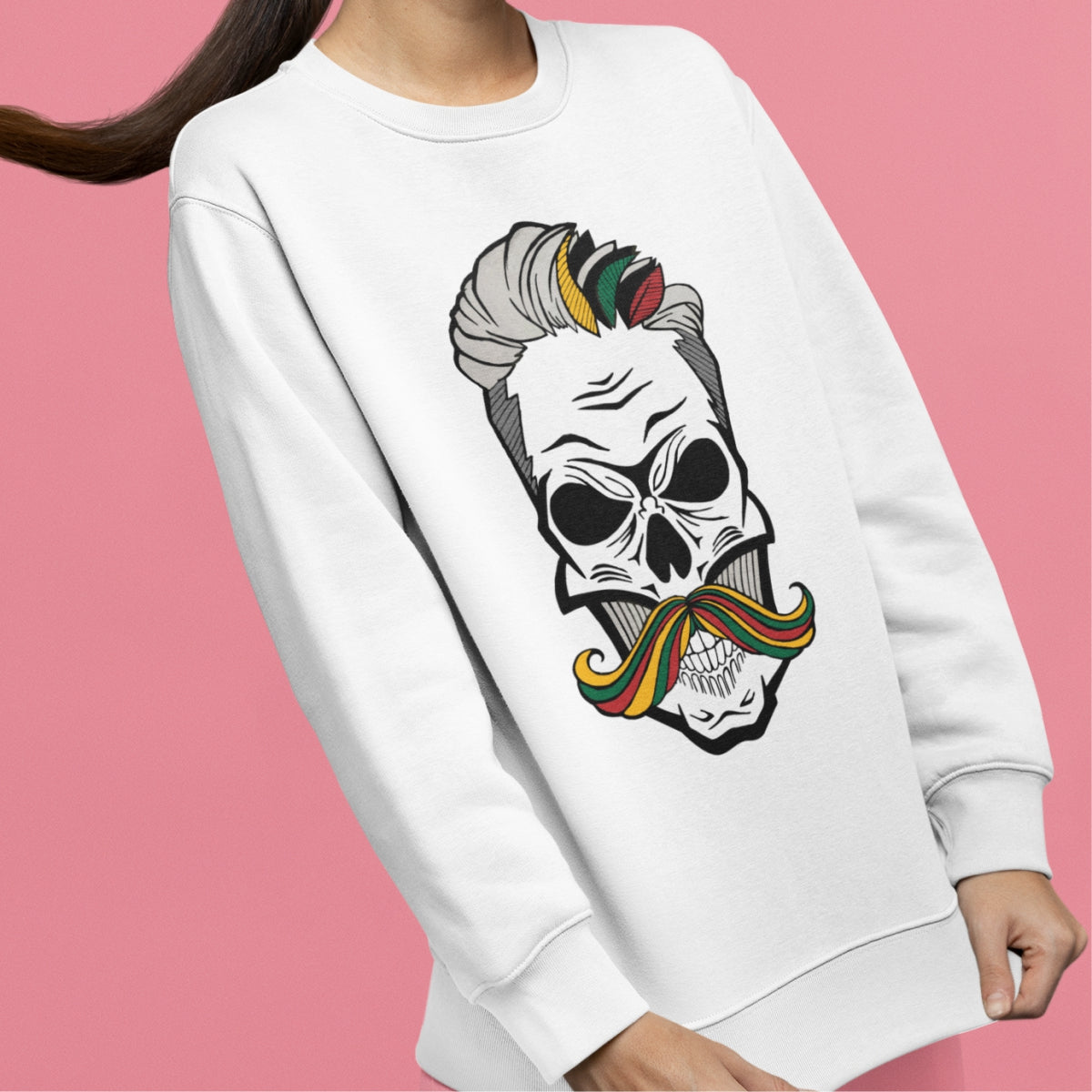 Baltas UNISEX džemperis be gobtuvo "Spalvoti ūsai"