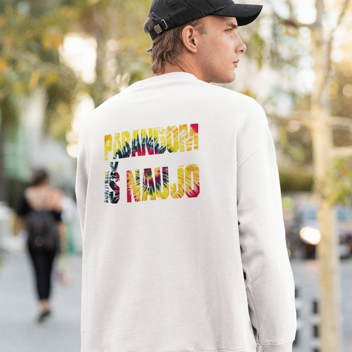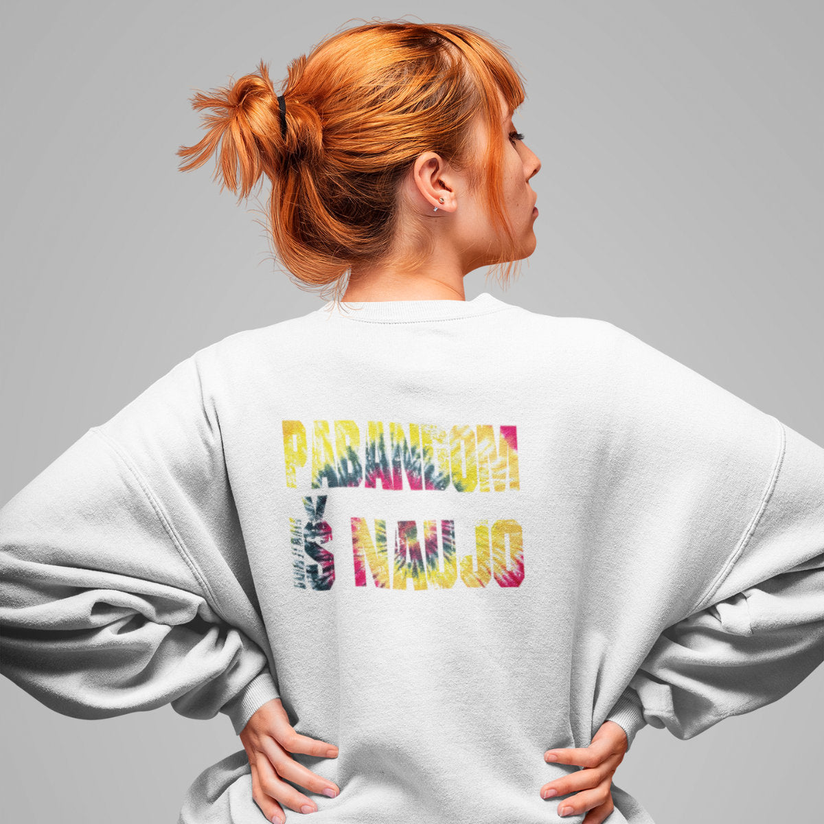 Baltas UNISEX džemperis be gobtuvo su spauda ant nugaros "Pabandom iš naujo"