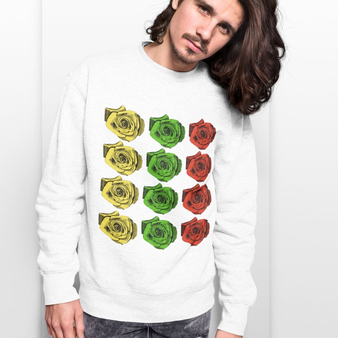 Baltas UNISEX džemperis be gobtuvo "Žydinti vėliava"