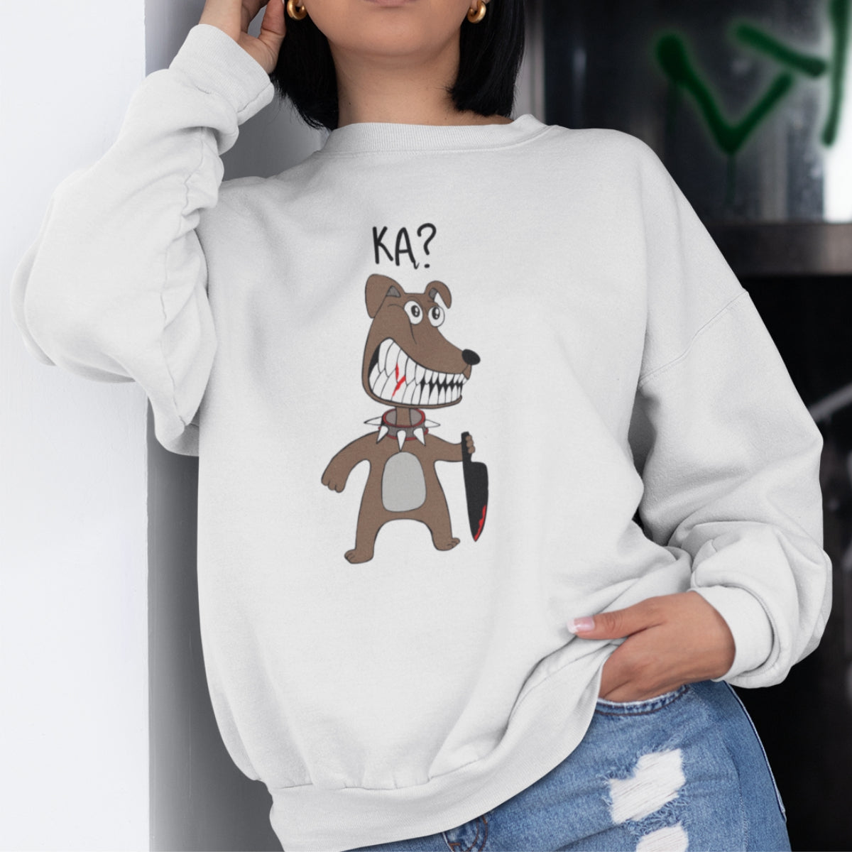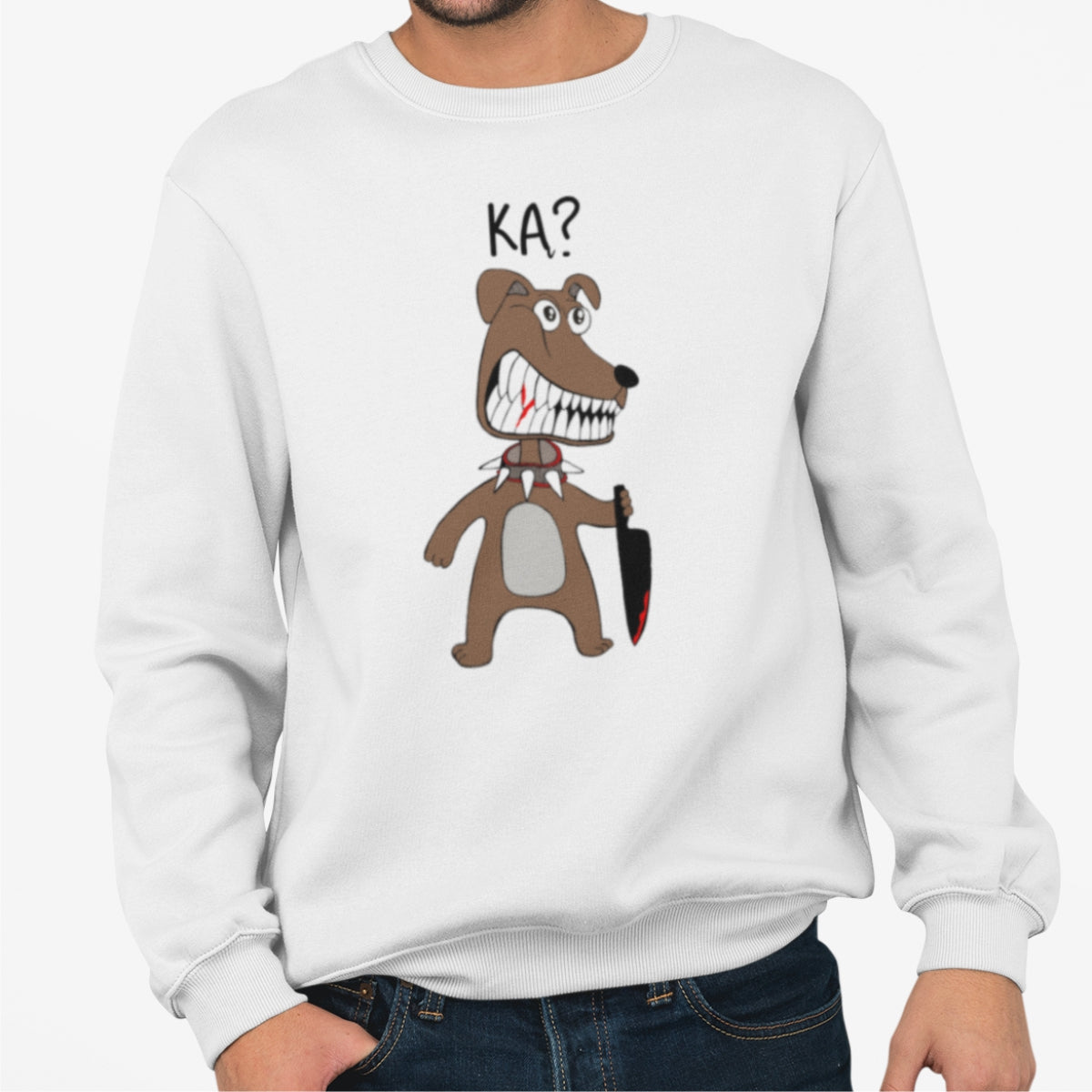 Baltas UNISEX džemperis be kapišono "Ką? Šuniukas"