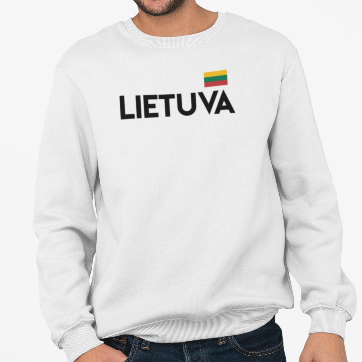 Baltas UNISEX džemperis be kapišono "Lietuva su maža vėliava"