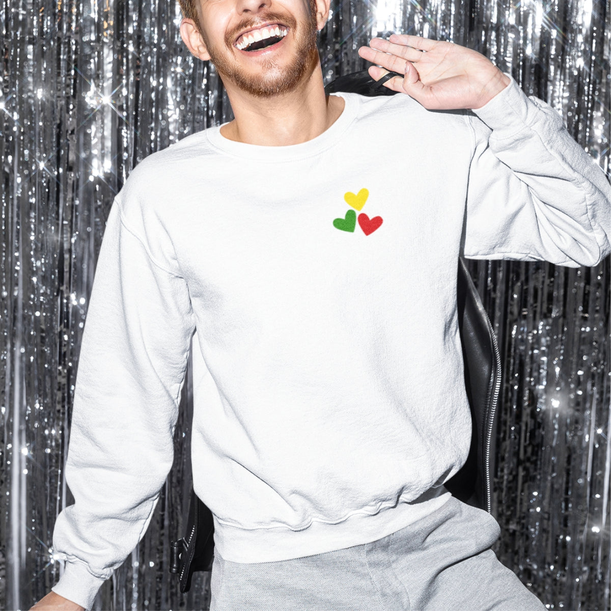 Baltas UNISEX džemperis be kapišono "Trys lietuviškos širdelės"