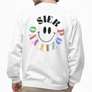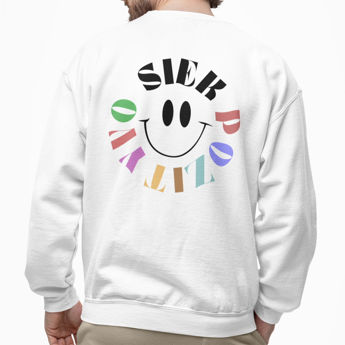 Baltas UNISEX džemperis su spauda ant nugaros "Siek pozityvo"