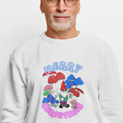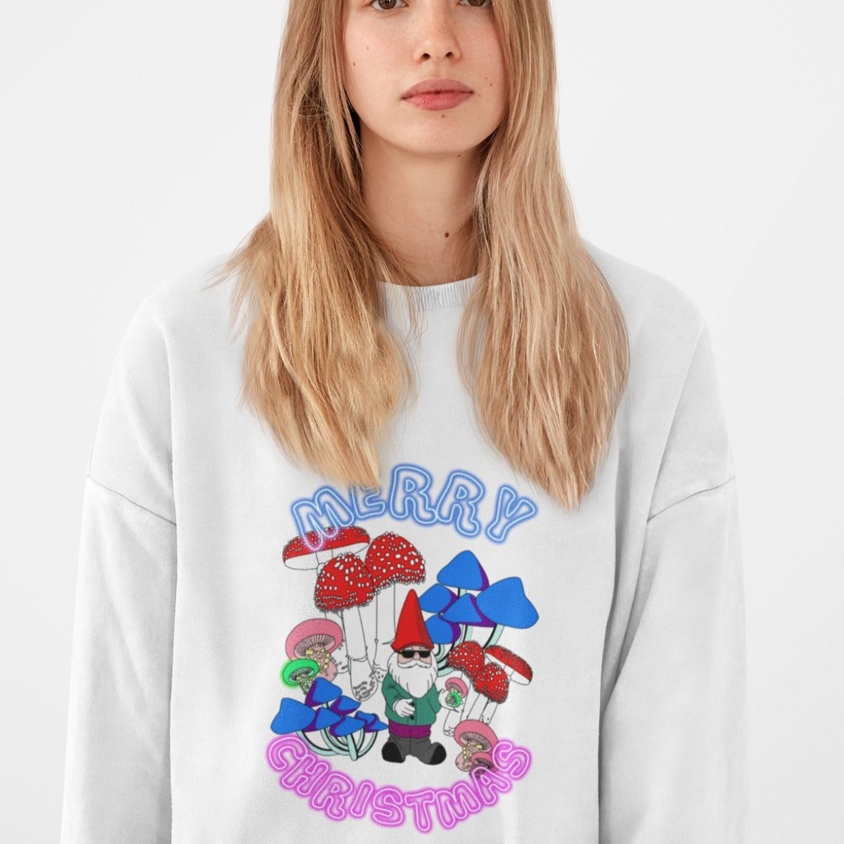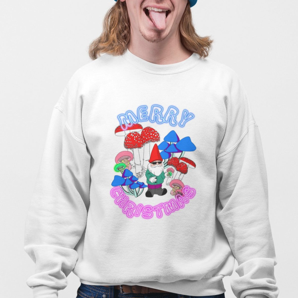 Baltas UNISEX kalėdinis džemperis be gobtuvo "Neoninės Kalėdos"