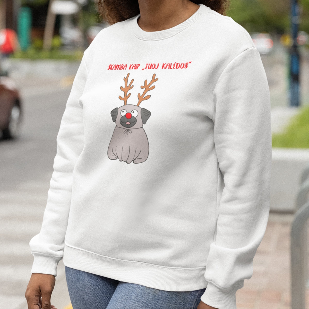 Baltas UNISEX džemperis Kalėdoms su spauda "Skamba kaip"