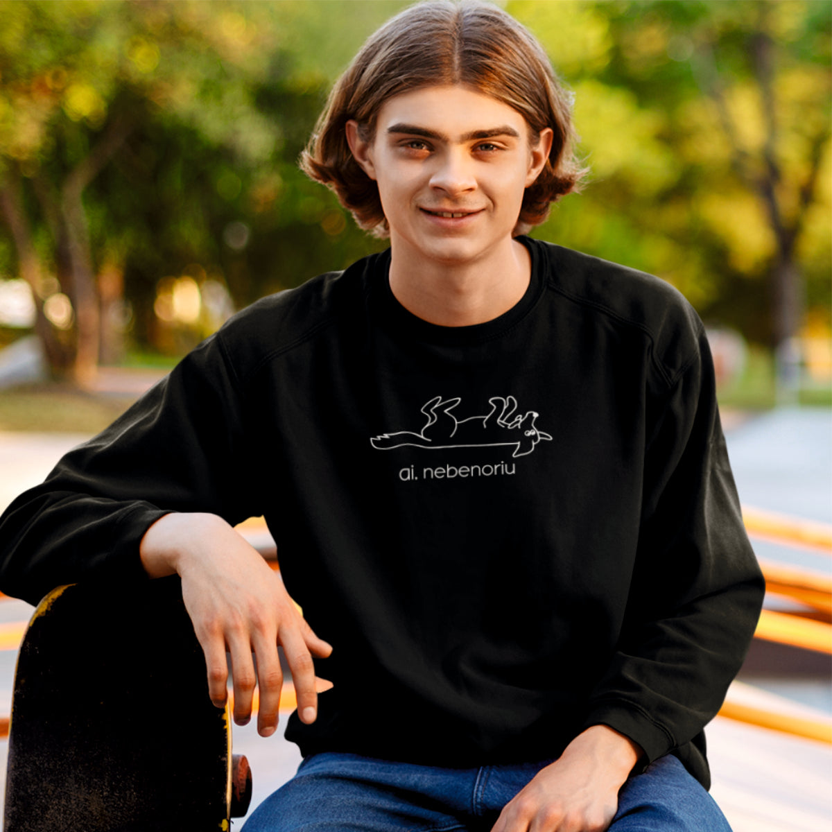 Juodas džemperis be gobtuvo "Ai, nebenoriu"