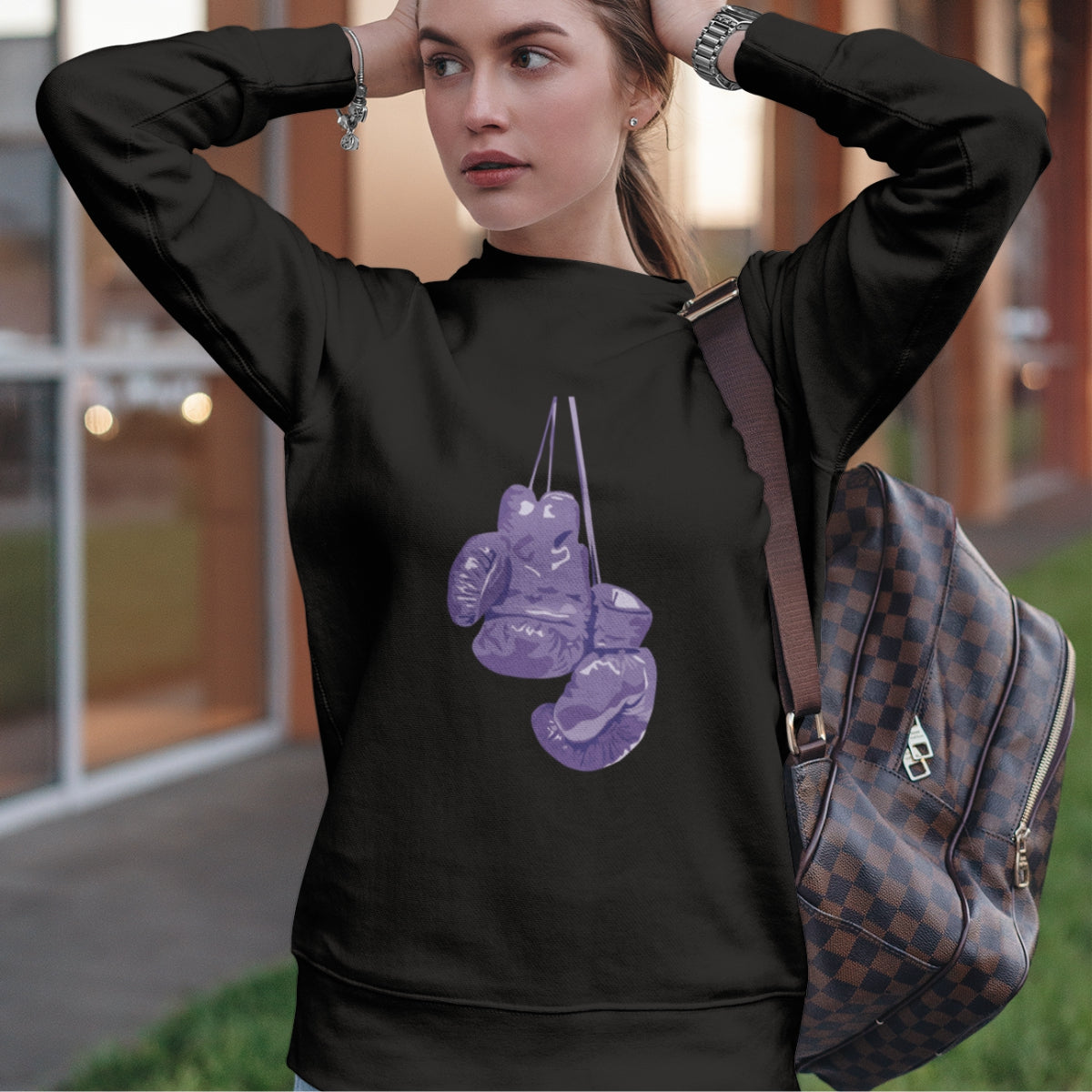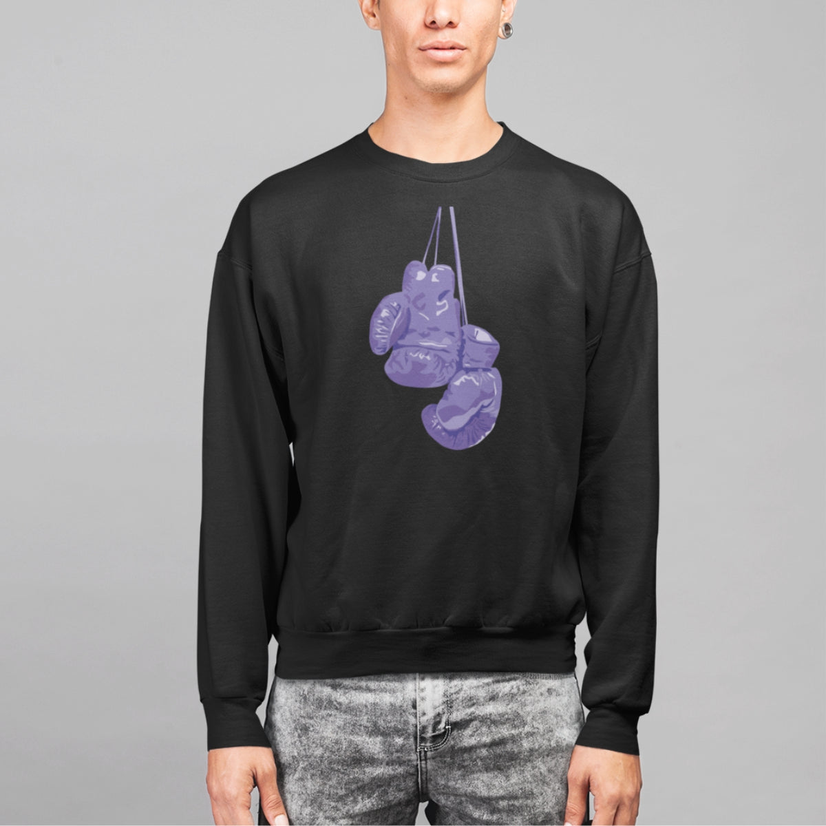 Juodas džemperis be gobtuvo su piešiniu "Bokso pirštinės"
