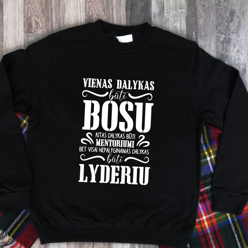 Juodas džemperis be gobtuvo "Bosas - lyderis"