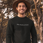 Juodas džemperis be gobtuvo "Fifty shades of tired"