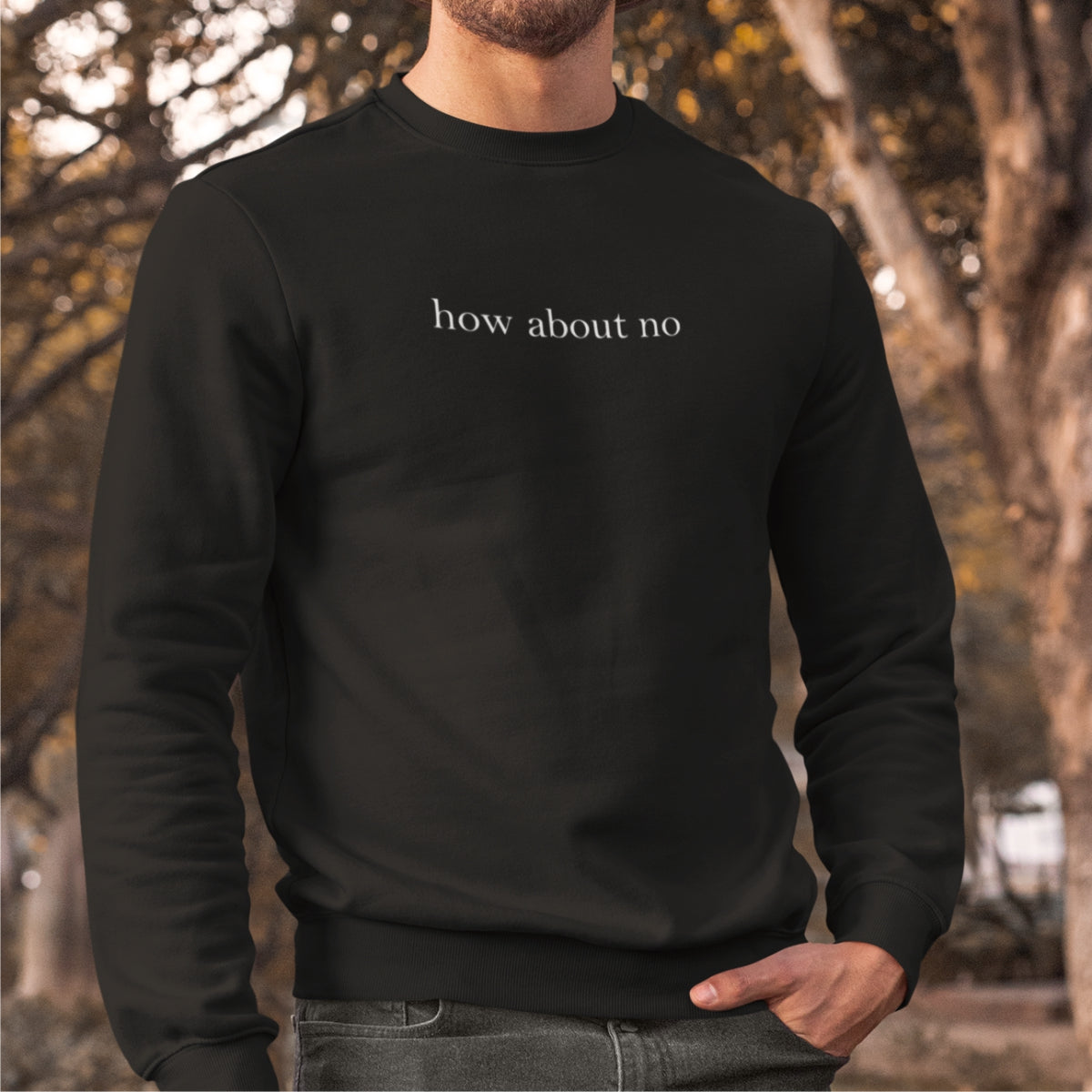 Juodas džemperis be gobtuvo "How about no"