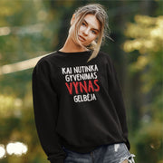 Juodas džemperis be gobtuvo "Kai nutinka gyvenimas"