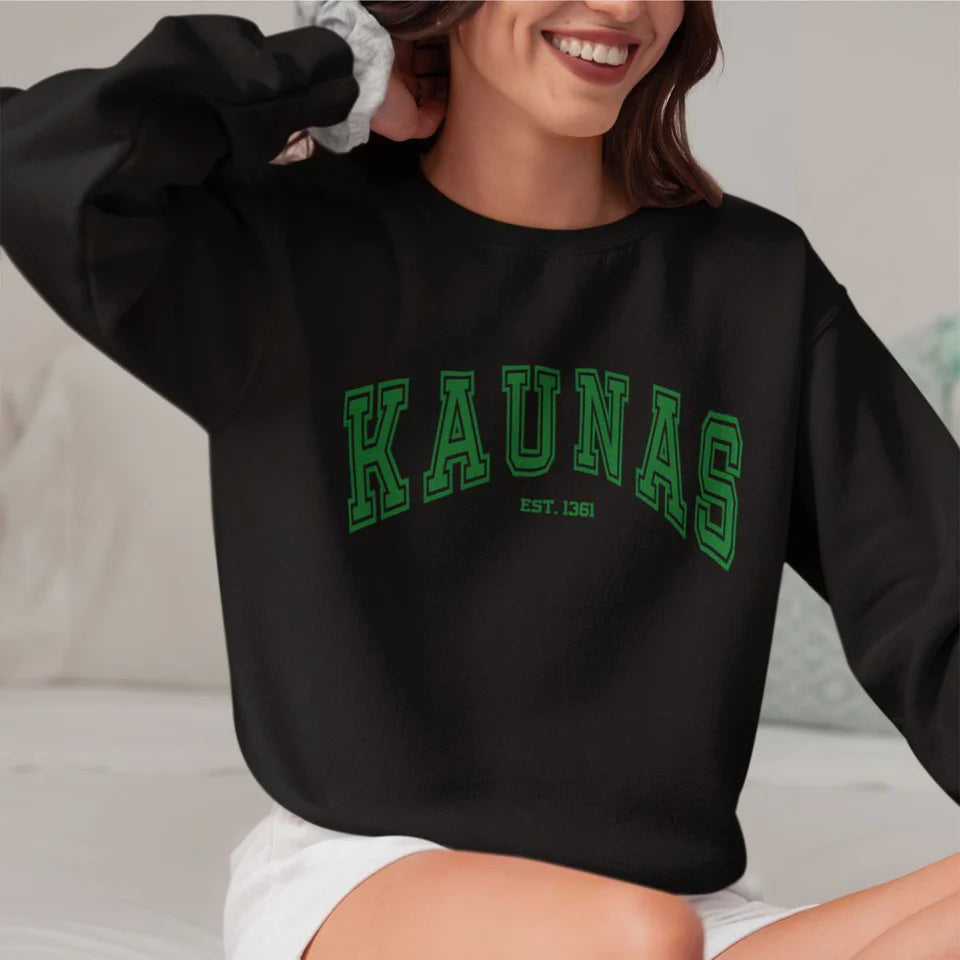 Juodas džemperis be gobtuvo "Kaunas est" (L dydis). Pagaminta prekė. Greitas išsiuntimas!