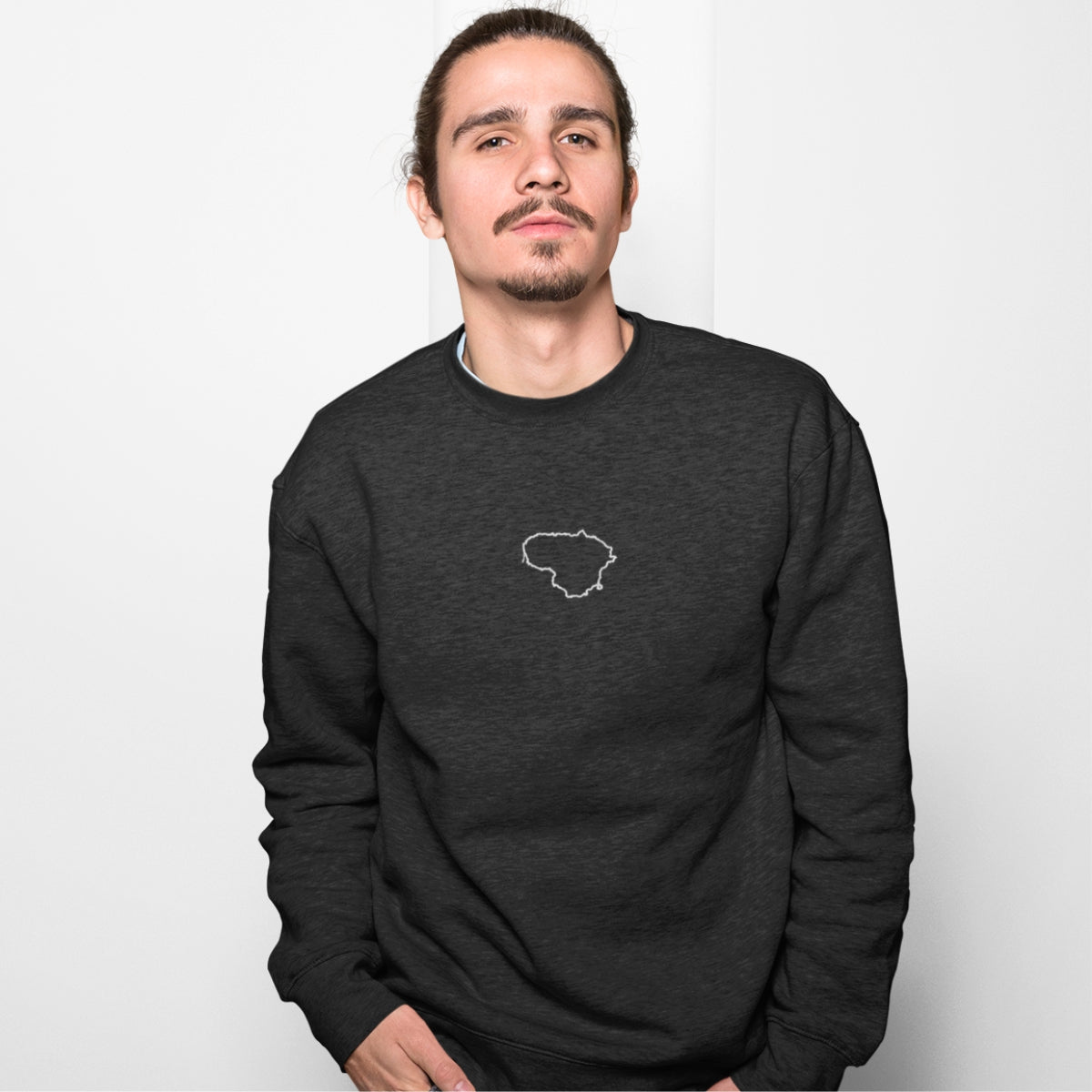 Juodas džemperis be gobtuvo "Lietuvos kontūrai"