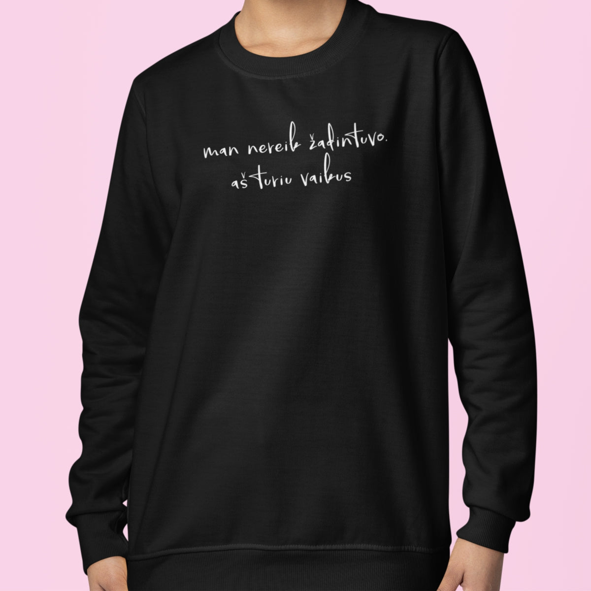 Juodas džemperis be gobtuvo "Man nereik žadintuvo"