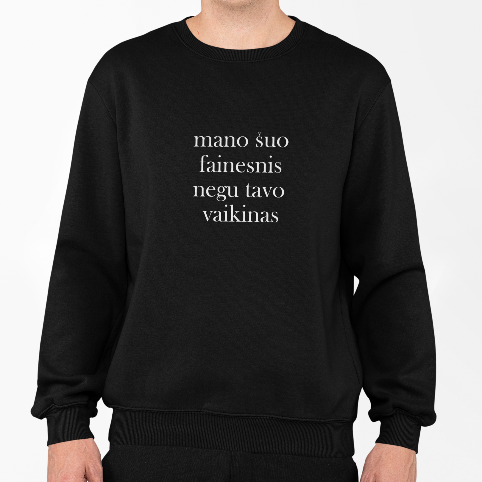 Juodas džemperis be gobtuvo "Mano šuo fainesnis"