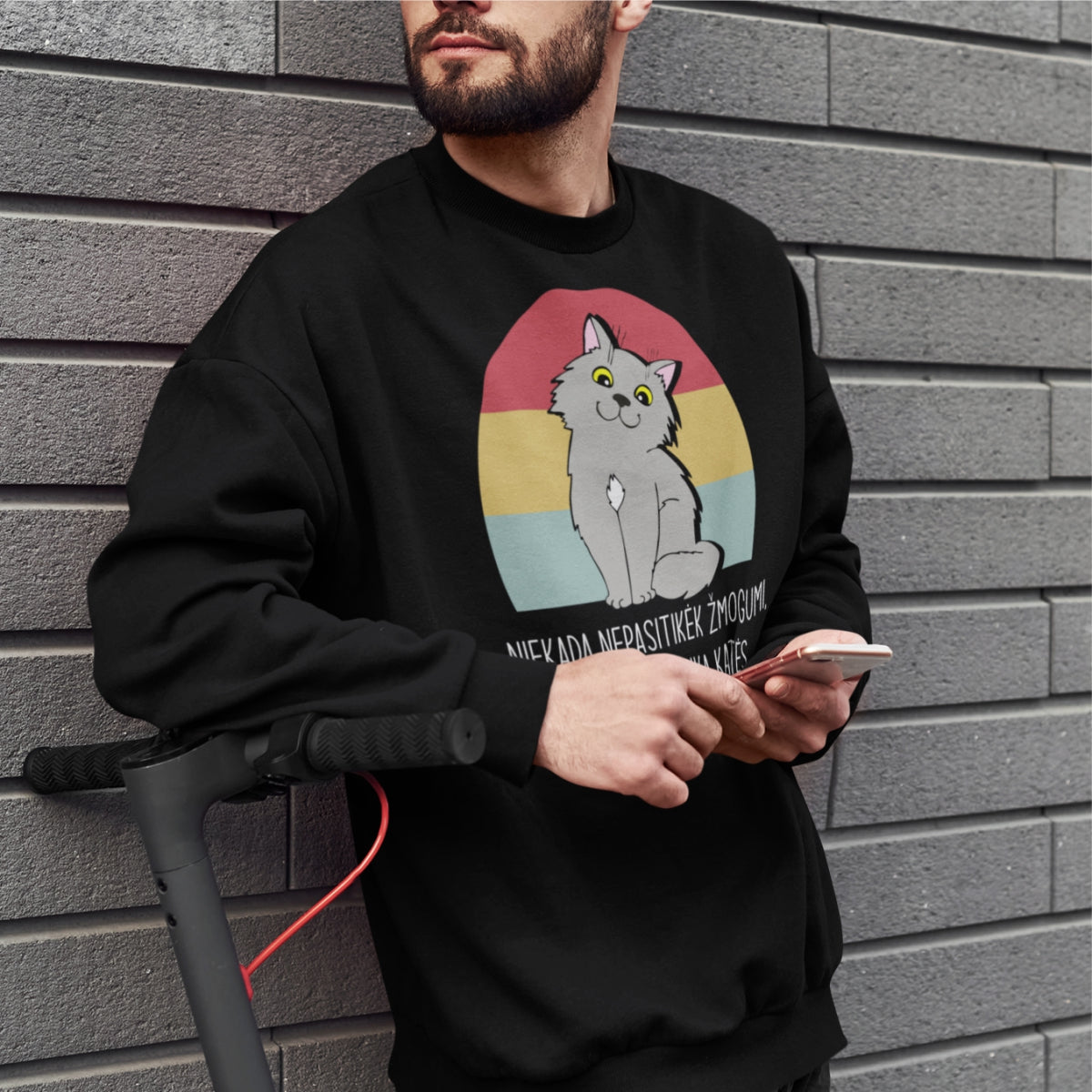 Juodas džemperis be gobtuvo "Niekada niekada"