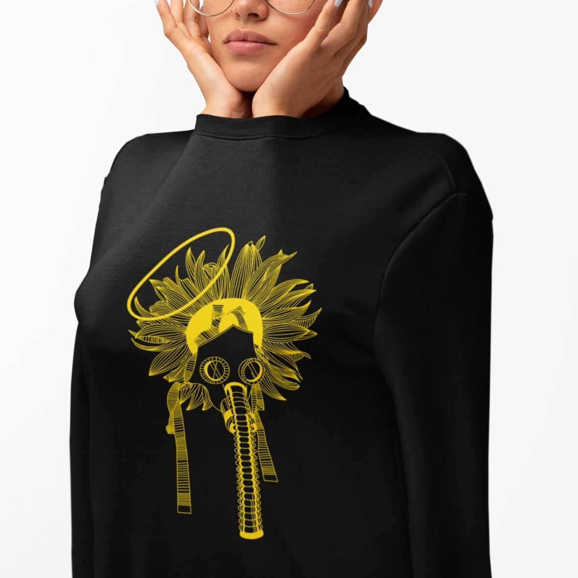 Juodas džemperis be gobtuvo "Pripetės dujokaukė"