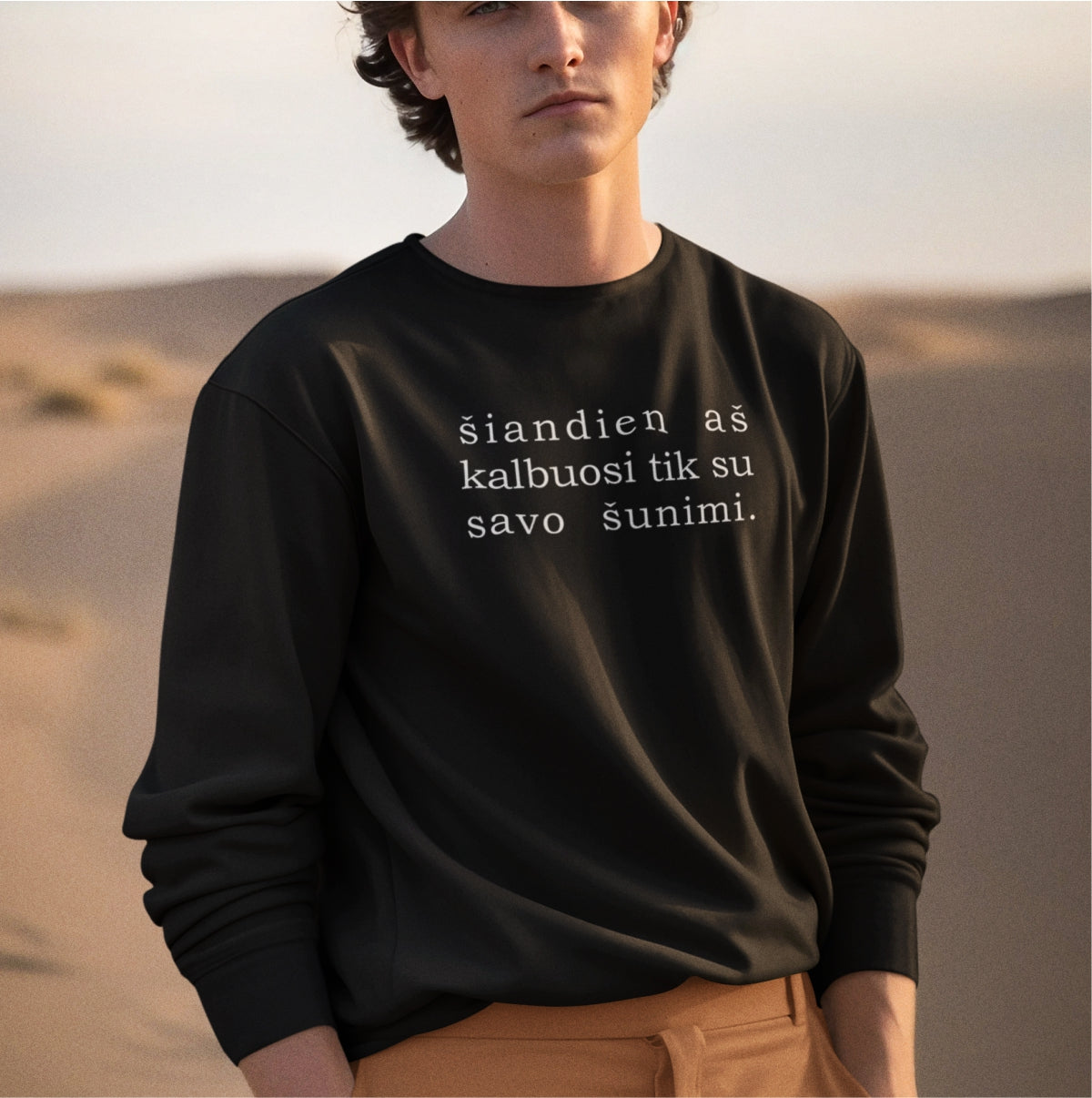 Juodas džemperis be gobtuvo "Šiandien aš kalbuosi tik su savo šunimi"