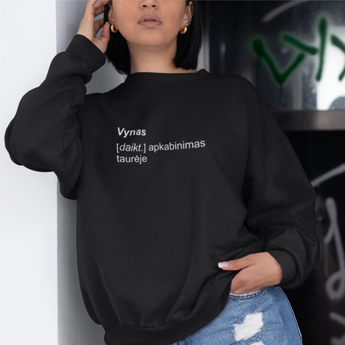 Juodas džemperis be gobtuvo "Vynas aprašymas"