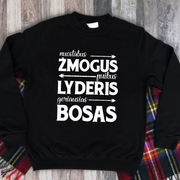 Juodas džemperis be gobtuvo "Žmogus, lyderis, bosas"