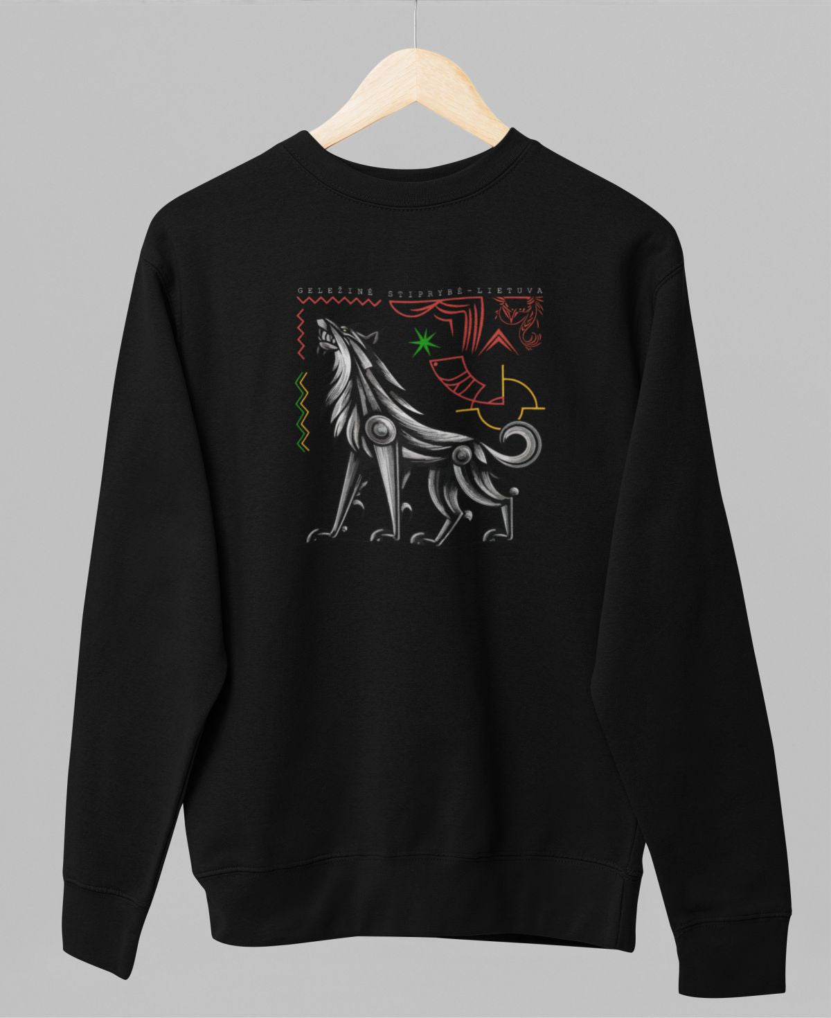 Juodas UNISEX džemperis be gobtuvo "Geležinė stiprybė - Lietuva"