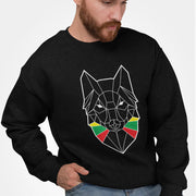 Juodas UNISEX džemperis be gobtuvo "Geometrinis vilkas" (L dydis). Pagaminta prekė. Greitas išsiuntimas!