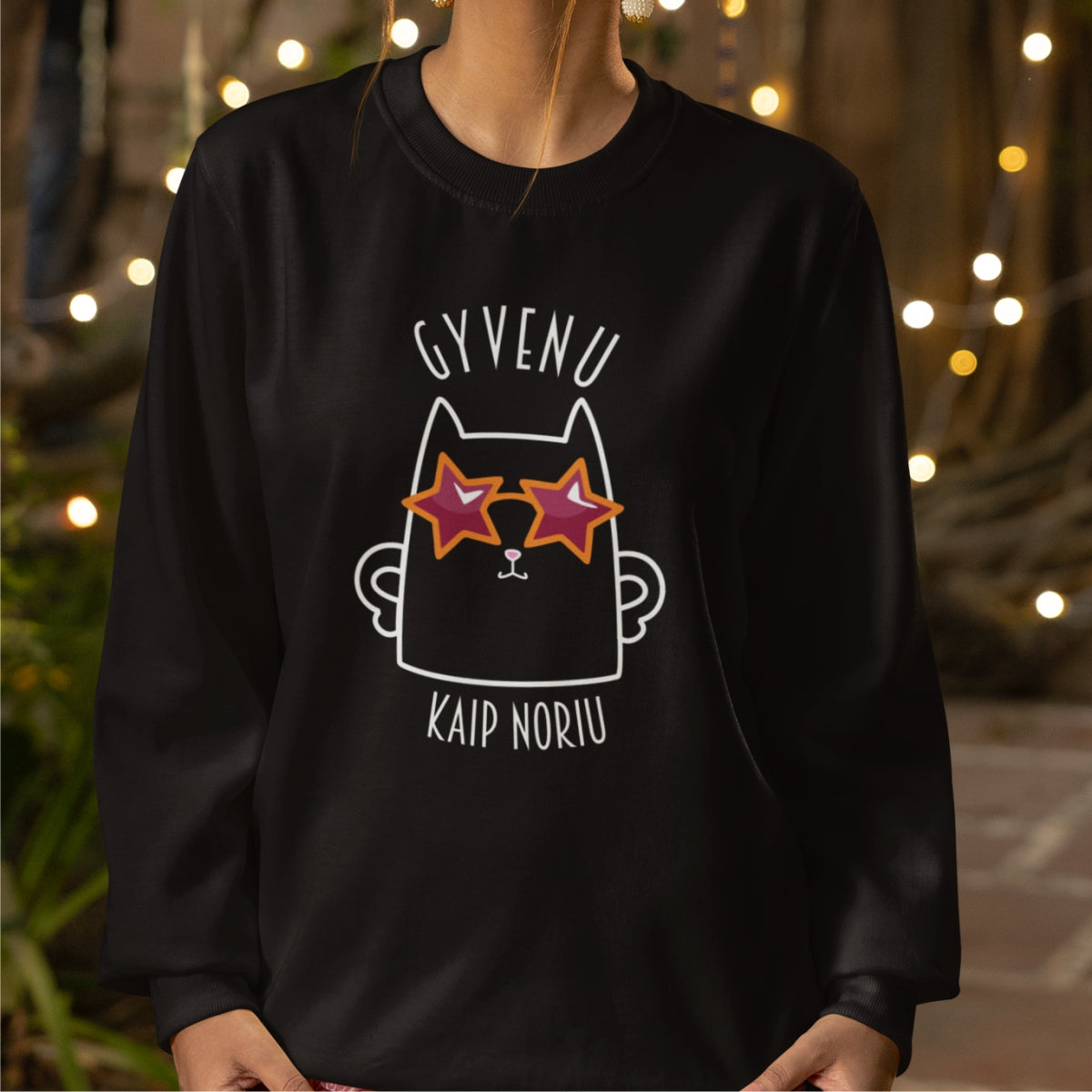 Juodas UNISEX džemperis be gobtuvo "Gyvenu kaip noriu NAUJAS"