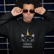 Juodas UNISEX džemperis be gobtuvo "Kačiukas vienaragis"
