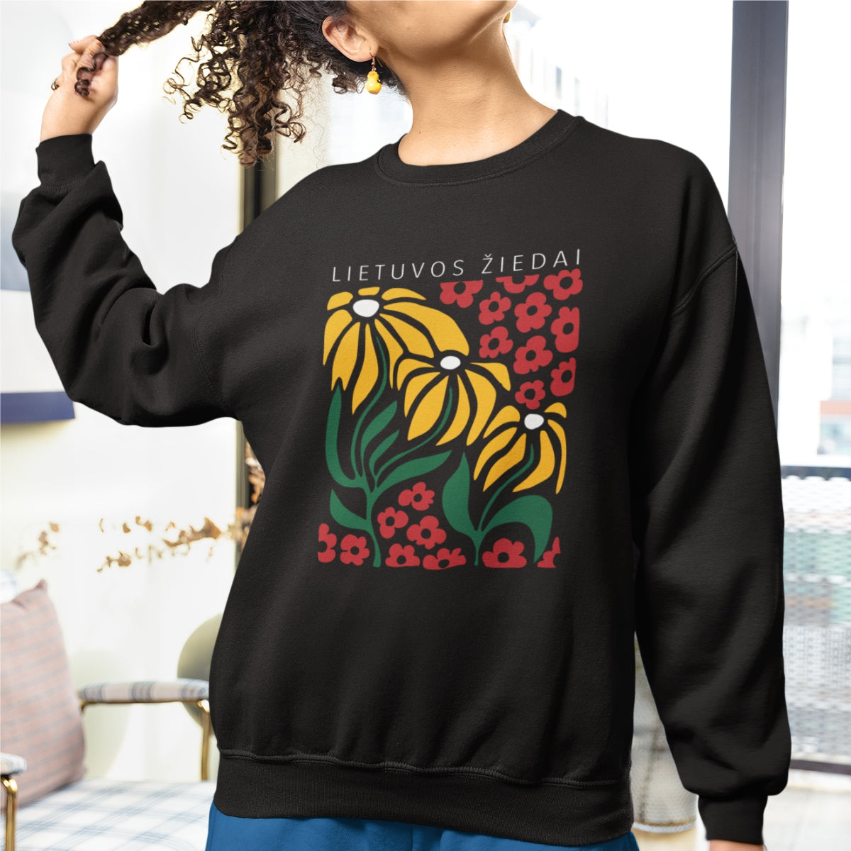 Juodas UNISEX džemperis be gobtuvo "Lietuvos žiedai"