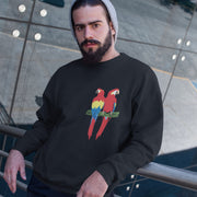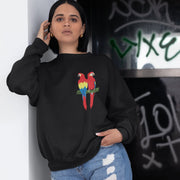 Juodas UNISEX džemperis be gobtuvo "Papūgos"