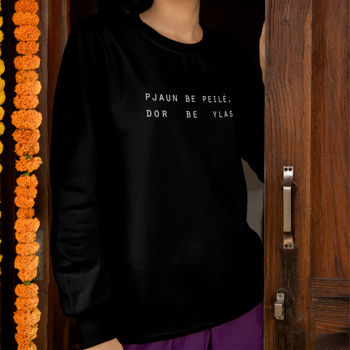 Juodas UNISEX džemperis be gobtuvo su žemaitišku užrašu "Pjaun be peile"