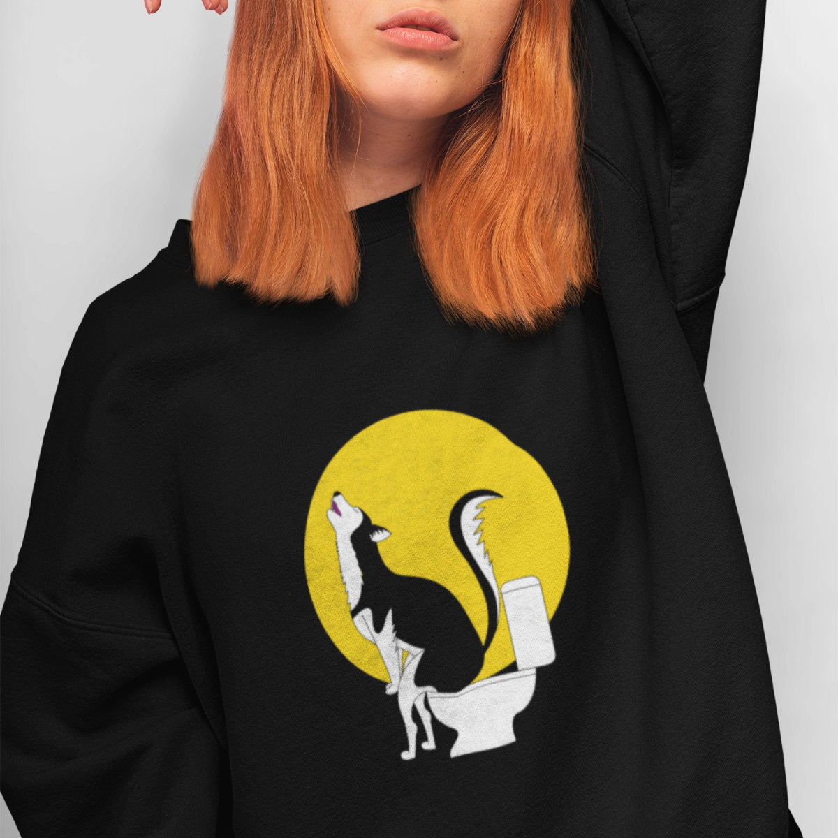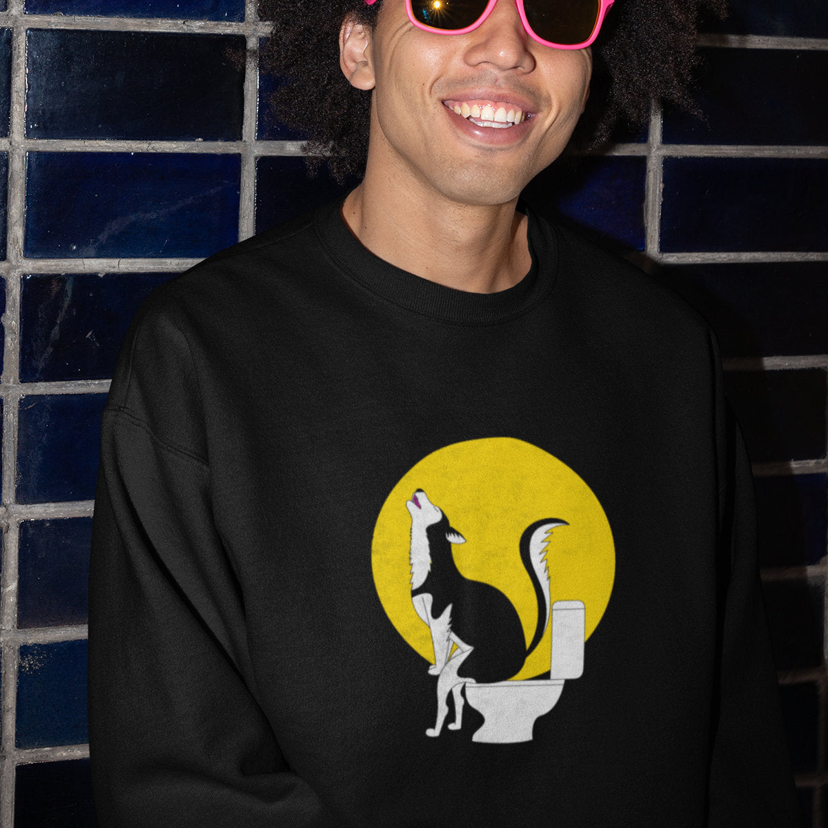 Juodas UNISEX džemperis be kapišono "Kaukiantis haskis"